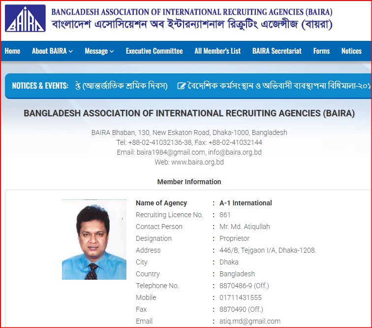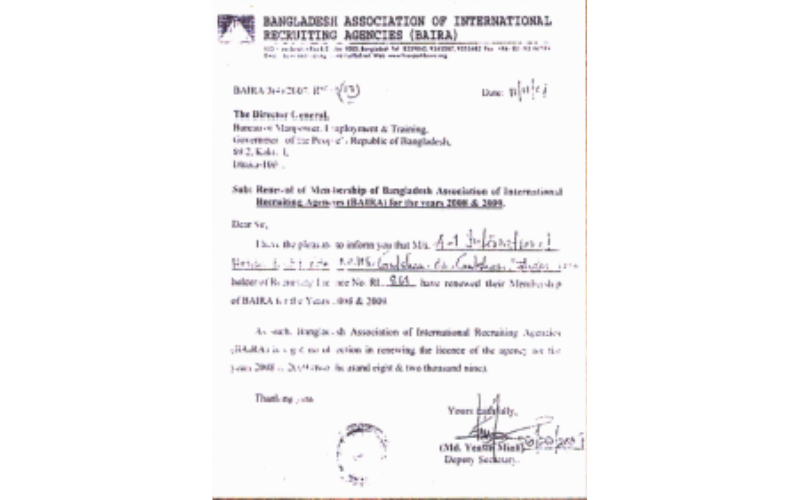 We are also a proud member of the Bangladesh Association of International Recruiting Agencies (BAIRA), an organization dedicated to promoting fair and responsible recruitment. Our affiliations and licenses underscore our dedication to transparency, legality, and the highest standards of service in the manpower recruitment industry.